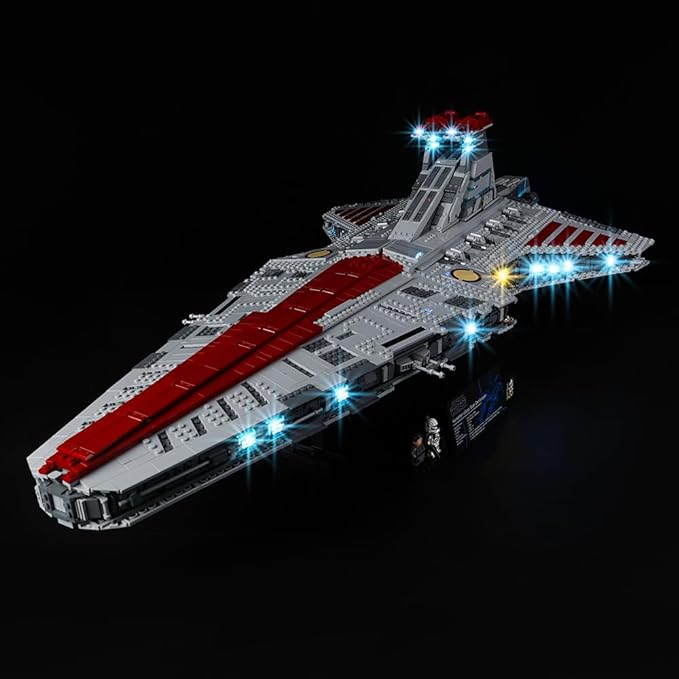- Accurate Replication: The set’s design is a faithful recreation of the Venator-Class Republic Attack Cruiser, featuring the signature red markings and gray hull seen in the Clone Wars series.