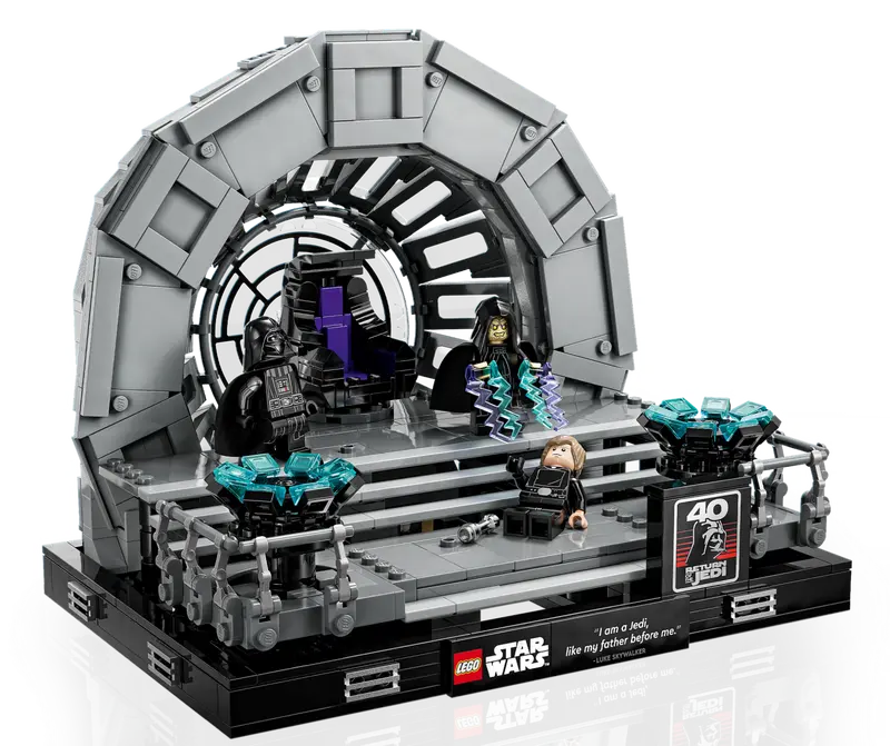 - Iconic Minifigures: The set comes with three minifigures: Darth Vader, Luke Skywalker, and Emperor Palpatine. Each comes complete with accessories like lightsabers and Force Lightning pieces.